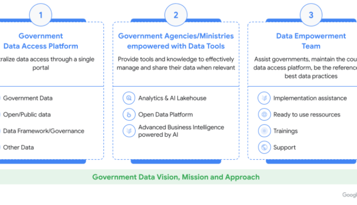 Google’s experiences across the Public Sector have led us to offer an adaptable framework for governments for defining and refining your government’s AI & data access strategy. We can break it down into three core pillars: