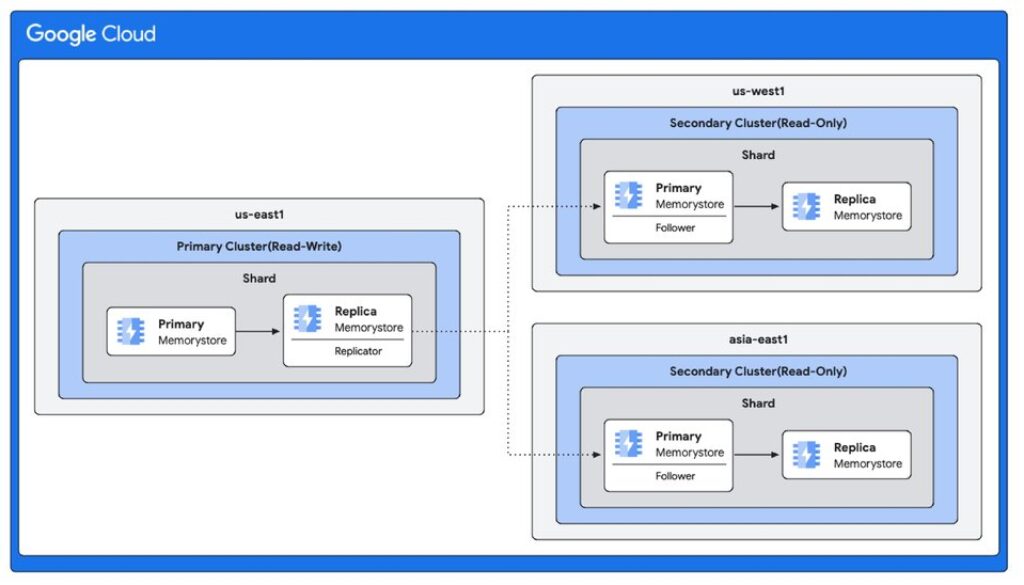 Many Google Cloud customers need to build multi-region or globally distributed architectures with sub-millisecond latencies at scale — and with high availability. Memorystore for Redis Cluster and Valkey is Google Cloud’s fully managed, in-memory data store that delivers extreme performance, sub-millisecond latency, and high scalability for enterprise applications. Today, we are excited to announce the preview of two new features: cross-region replication and single-shard clusters that help customers achieve these goals.