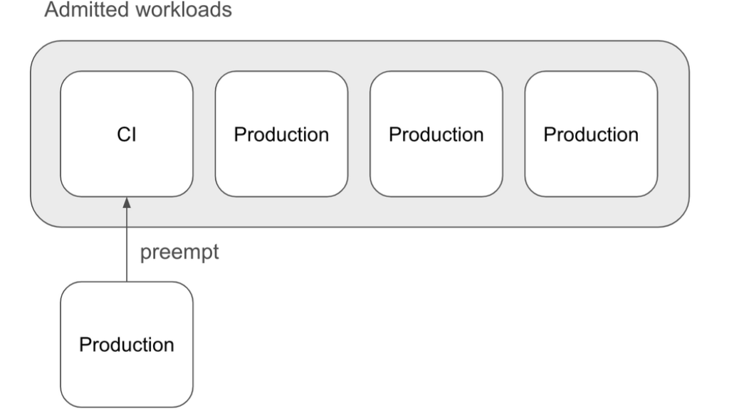 A company hosts a variety of batch workloads on a GKE cluster, including continuous integration (CI) tests and offline batch inference tasks using RayJob for production purposes. Given that the cluster’s resources are finite and must be shared among these applications, the company aims to ensure the swift completion of production workloads. Consequently, priority scheduling is employed, allowing production workloads to preempt resources from lower-priority tasks, such as CI tests.