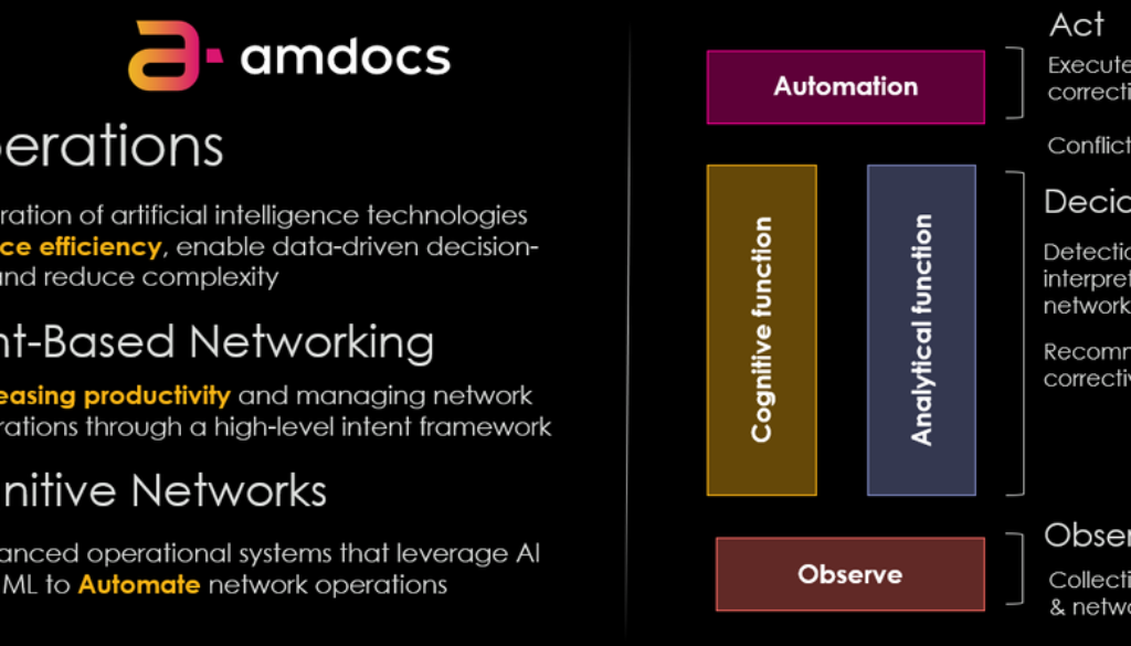 Closed-loop automation (Act layer): Amdocs Network AIOps employs a closed-loop approach, where the system continuously learns from previous actions and data patterns to improve its accuracy and efficiency over time.