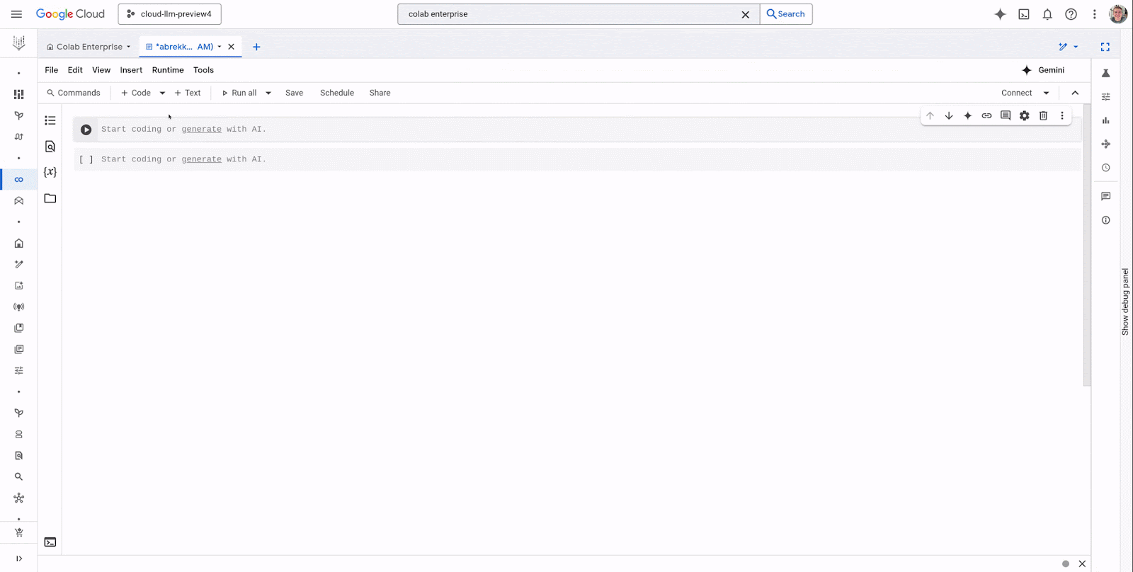 The latest version of Gemini, Google’s largest and most capable AI model, is now directly available in Colab Enterprise. With this integration, users can now use AI to assist with code completion and generation, increasing their productivity and decreasing time to value:
