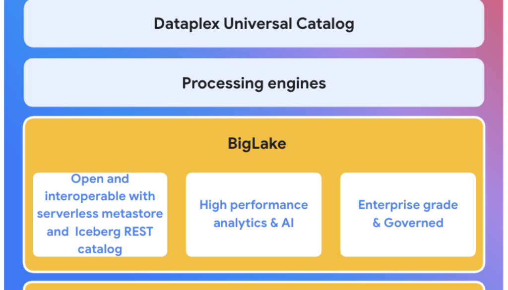 AI-powered governance across Google Cloud: These BigLake updates are natively supported with Dataplex Universal Catalog, providing unified and fine-grained access controls across all supported engines and enabling end-to-end governance complete with comprehensive lineage, data quality, and discoverability capabilities.