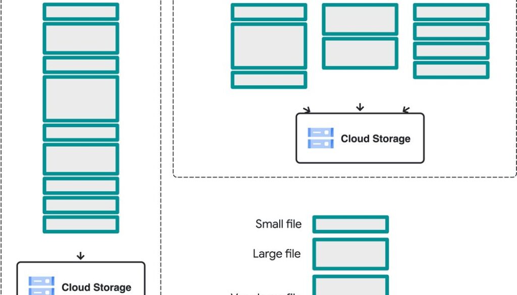 For workloads that involve large files, the transfer manager provides a “divide-and-conquer” strategy that shards the data in a file and concurrently transfers all the shards. Sharded downloading is implemented with ranged reads. Depending on which client library you use, upload operations utilize either the XML multipart upload API or the gRPC compose API.
