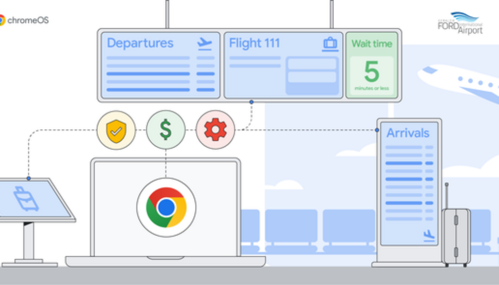 Today’s post is by J.J. Swain, IT Manager for Gerald R. Ford International Airport (GRR) in Grand Rapids, Michigan. The airport serves more than three million passengers annually and over 100 cargo flights per day. GRR partnered with ChromeOS and Art of Context to upgrade and modernize the airport’s extensive digital signage system.