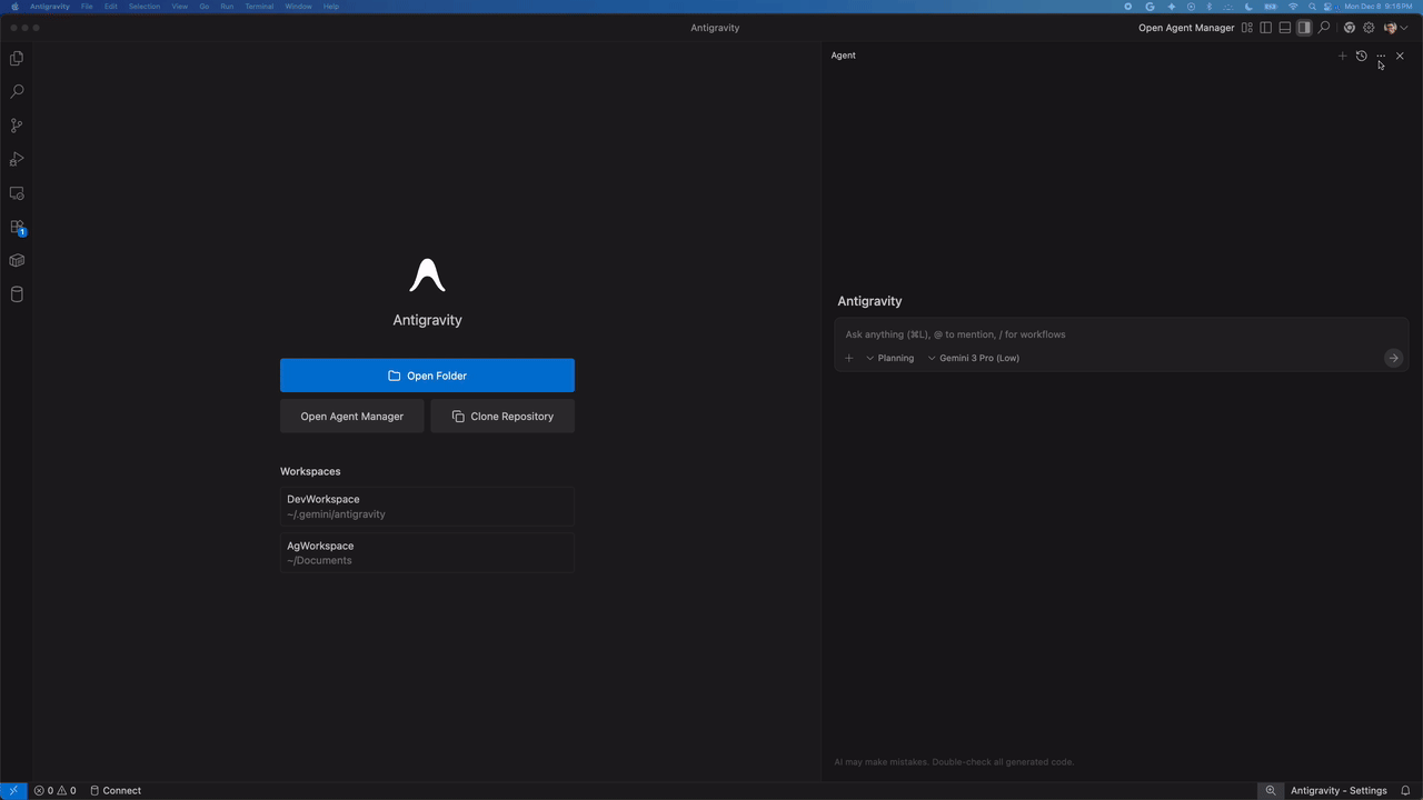 Antigravity agent using the MCP tools