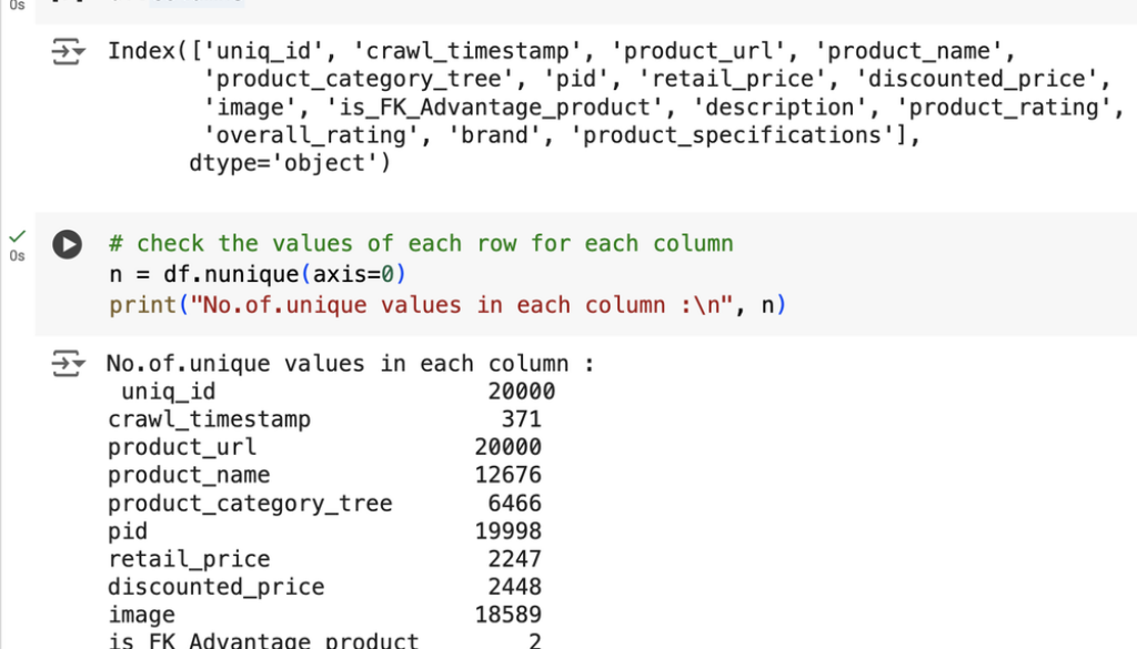 The dataset has 15 different columns. The columns of our interest are: ‘uniq_id’, ‘product_name’, ‘description’, ‘brand’ ,‘product_category_tree’, ‘image’ ,‘product_specifications’.