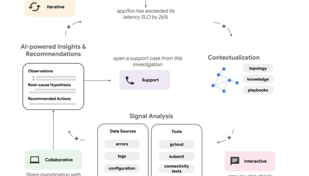 - AI-powered insights and recommendations: Utilizing specialized knowledge sources, like Google Cloud support knowledgebases and internal runbooks, investigations generate probable root cause and actionable recommendations.