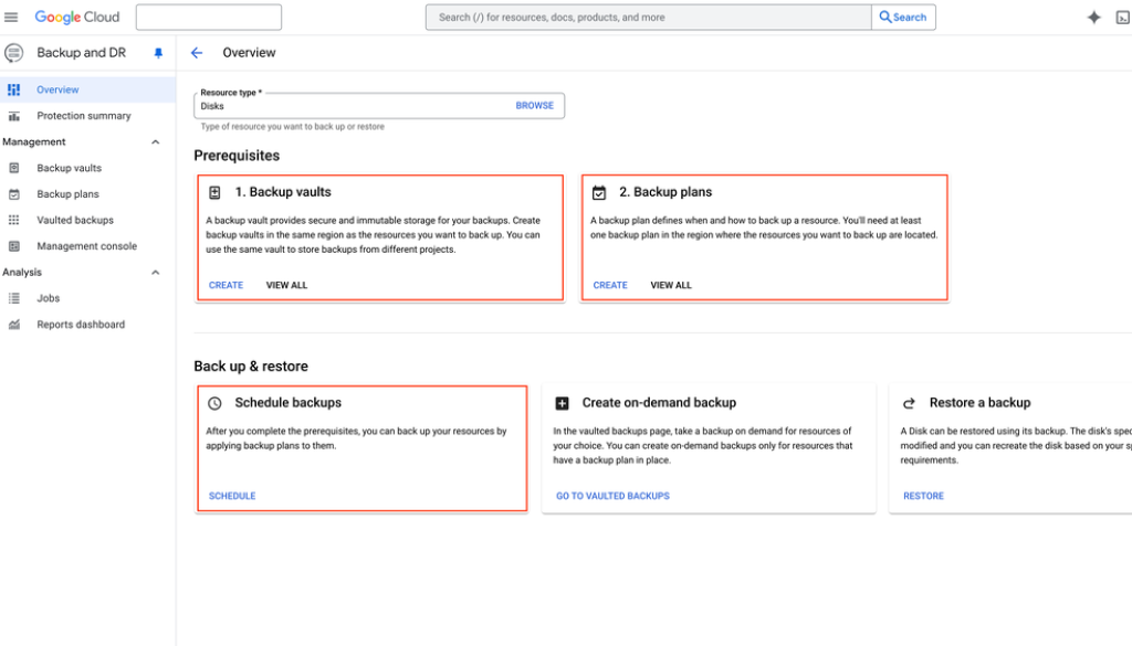 Define a backup plan: Next, create a comprehensive backup plan, specifying parameters such as the desired backup frequency (how often your disks will be backed up), backup retention period, and designating the specific backup vault where the backup data will be stored.
