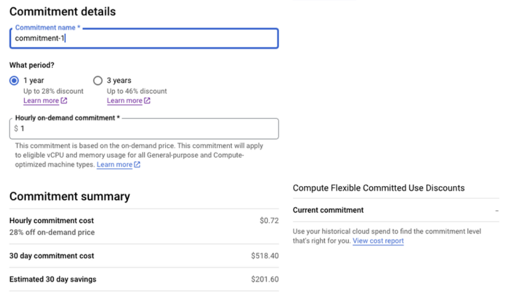 If you’re already using Flexible CUDs for Compute Engine, you’ll automatically see the discounts applied to eligible Cloud Run and GKE Autopilot usage (if you have product-specific CUDs like the legacy GKE Autopilot CUD, those will apply first). If you’re new to Compute Flexible CUD, it’s easy to get started: estimate your hourly spend across eligible SKUs, and purchase a commitment that matches your expected sustained usage over the one- or three-year term, and start enjoying the savings! You can add additional CUDs as your usage grows.