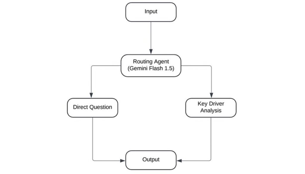 To tackle these challenges, we prompted engineered Gemini Flash 1.5 as a routing agent to classify questions based on their complexity. Once the question is classified, we can use techniques such as ambiguity checks, vector embeddings, semantic searches, and contribution analysis modeling to improve our outputs.
