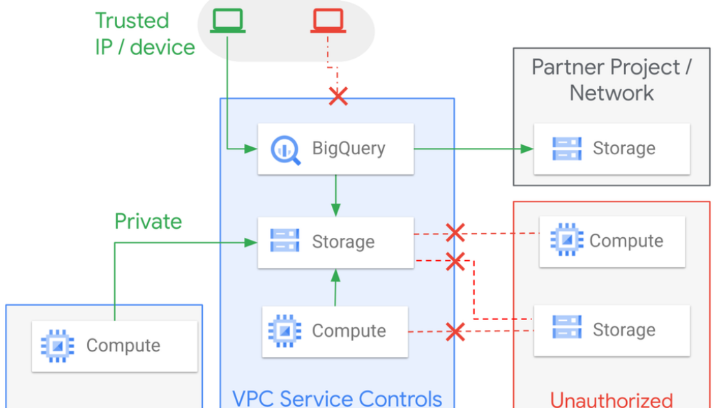 In the event of a credential compromise or insider threat scenario, VPC Service Controls acts as an extra layer of defense that can help prevent data exfiltration to un-authorized organizations, folders, projects, and resources.