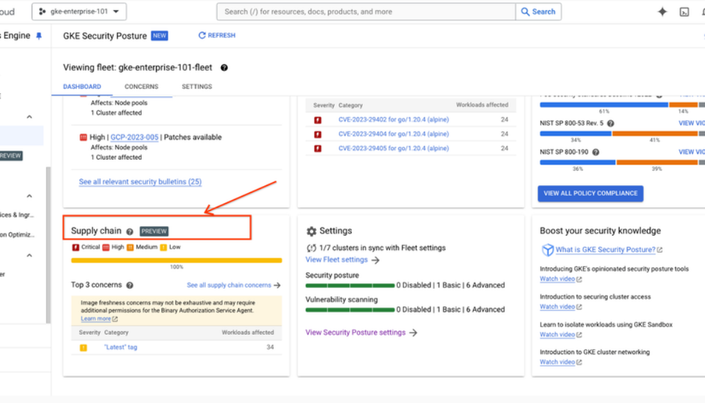 To boost transparency and control over your software supply chain, we are introducing a new “Supply Chain” card within the GKE Security posture dashboard. Now available in public preview, this powerful feature allows you to visualize potential supply chain risks associated with your GKE workloads.