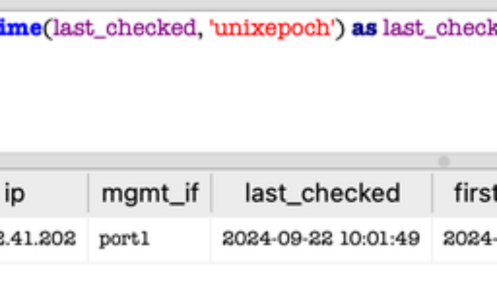 Mandiant scraped the FortiManager’s memory image for additional artifacts of threat actor activity and detected a JSON blob containing the keywords “FMG-VMTM23017412” and “45[.]32[.]41[.]202”. This JSON blob also included a “first_tunnel_up” key, which contained the epoch time of 1726999303 as its value. This timestamp translates to 2024-09-22 10:01:43 UTC.