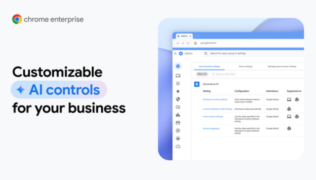 These controls will be made available for Gemini in Chrome and other new AI features that come to the browser. To support organizations to navigate how they want to approach GenAI on the web, Chrome Enterprise has published a useful guide to help IT teams create strong internal AI governance. Read “Managing generative AI in the browser” today.