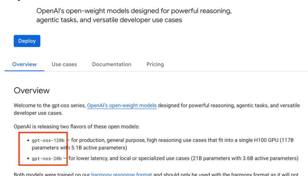 This continues our support for a broad and diverse ecosystem of models, from Google’s own Gemma family, to models like Llama 4, and now, OpenAI’s gpt-oss. We believe that offering choice and leveraging the best of the open community is critical for the future of AI.