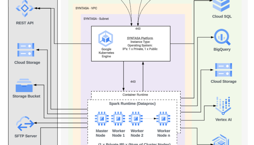 The architecture for this solution was built on the Syntasa Data + AI Platform. Workloads run on Google Kubernetes Engine (GKE) for its scalability, allowing the platform to process incoming sentiment data quickly. The platform also uses Cloud SQL and Google Cloud Storage as part of its data foundation, with BigQuery doing the heavy lifting for sentiment analysis. BigQuery provides the performance, efficiency, and versatility needed to handle large datasets of search and social media information efficiently.