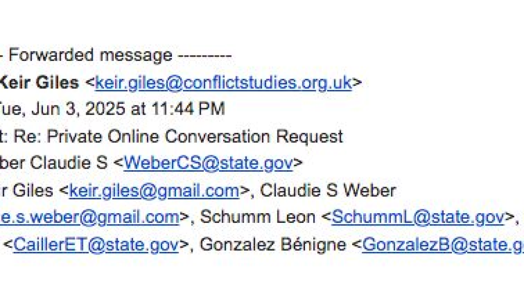 Figure 1: Keir Giles, a prominent British researcher on Russia, posted this screenshot of an email header with fake U.S. Department of State emails that was part of a UNC6293 campaign