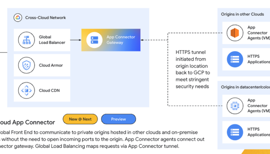 Today, we now have a new option for private origin communication over the internet using Google Cloud’s App Connector technology. This lets you run dual App Connector agents in another cloud, on-prem, or in a co-location environment. When the agents launch, they connect back to the App Connector service in Google Cloud, enabling a reverse-tunnel for origin communications without needing to open incoming ports from the internet. This capability is now in preview, and you can contact your sales team for more information and to gain access.