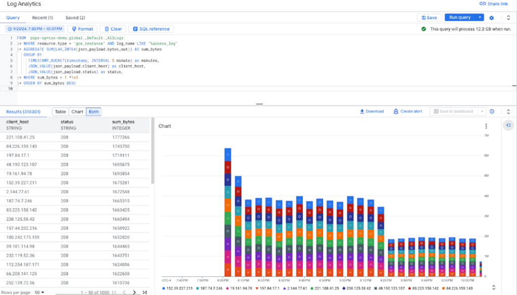 Log Analytics in Cloud Logging is built on top of BigQuery and provides a UI that’s purpose-built for log analysis. With an integrated date/time picker, charting and dashboarding, Log Analytics makes use of the JSON capabilities to support advanced queries and analyze logs faster. To seamlessly integrate these powerful capabilities into your log management workflow, we’re also enhancing Log Analytics (in Cloud Logging) with pipe syntax. You can now analyze your logs within Log Analytics leveraging the full power of BigQuery pipe syntax, enhanced lookups, and JSON handling, all within a unified platform.