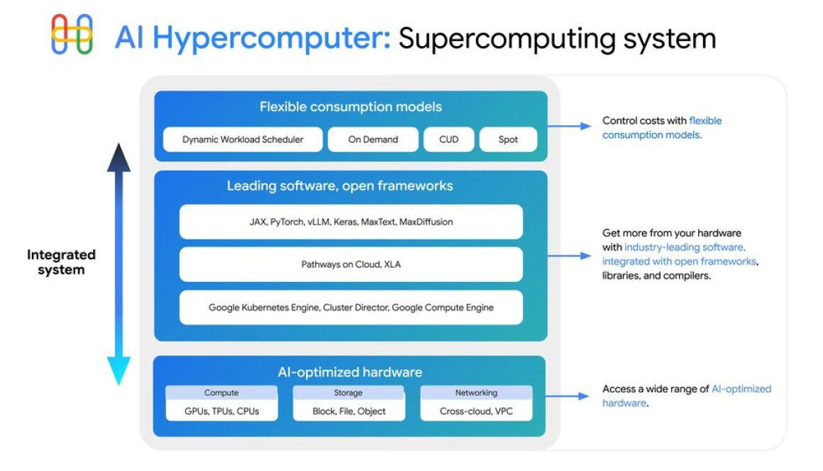 At Google Cloud, we provide you with access to the same capabilities behind Gemini, Veo 3, and more through AI Hypercomputer, our integrated AI supercomputing system. AI Hypercomputer allows you to train and serve AI models at massive scale, delivering superior performance, lower latency, and best-in-class price/performance. For example, the latest enhancements to Cluster Director simplify the complex task of managing your compute, network, and storage for both training and inference workloads, while new contributions to llm-d help to significantly accelerate the deployment of large-scale inference models on Google Kubernetes Engine (GKE).