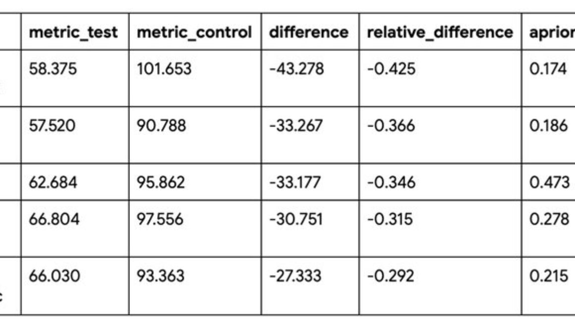 Summable by category metrics are also helpful when you have different numbers of test and control rows. Say you want to compare revenue data from 2024 to 2025, but you only have five months of data from 2025 compared to twelve months of data in 2024. With the summable by category metric, you can analyze the differences in revenue per month to get a more direct comparison between the two groups.